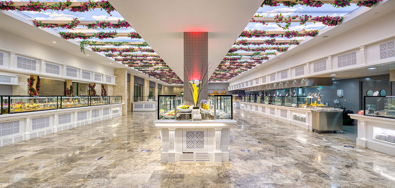 A memorable dining journey awaits you at The Restaurant, featuring an unlimited experience with a selection of world cuisines. Regularly scheduled theme nights include world cuisines; the restaurant is featuring Malagasy cuisine for the first time in the Mediterranean. All dishes prepared by our award-winning chefs are prepared with the freshest and most high-quality ingredients of the season. Enjoy unlimited dining at the restaurant, which offers a vegan and vegetarian buffet as well as a children's buffet.